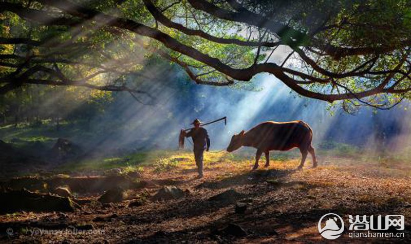 春季,大概是牛儿最喜欢的季节了。不为别的,田野里草又嫩又密又长,吃得欢喜。记得,每天天不亮,爷爷总在腰上别着一根老烟杆,牵着水牛出去,我们快要上学的时候才牵着牛回来。我们总是能够在每天的晨曦中与爷爷有一次“不期而遇”。