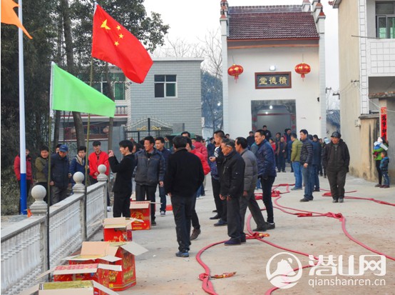 庆典开始时,人们在祖堂门前,观看烟花的场面!