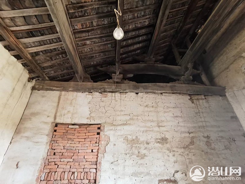 踏入大门后厅,斑驳的灰白色墙面、被红砖填充的偏门、布满灰尘的梁架青瓦,散发着毫不掩饰的简朴气息。当地年长的村民告诉我们,上方霉烂的梁架很特别,至于如何特别,他也说不出一二。我们抬头凝视着,感受这份古老的韵味。